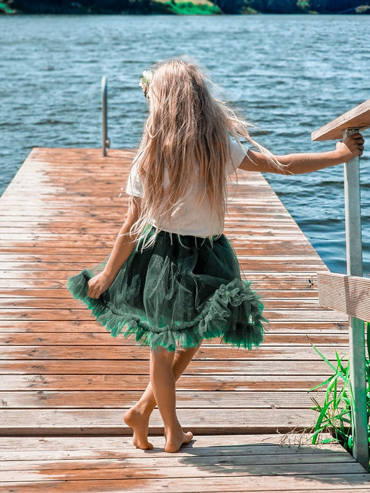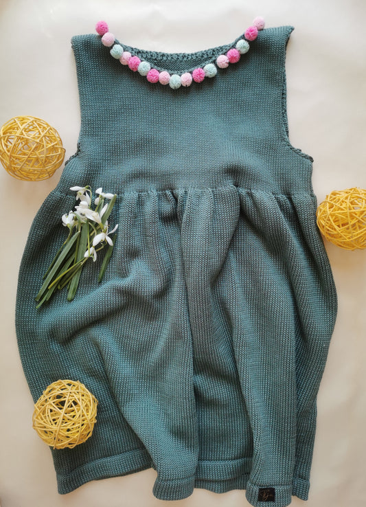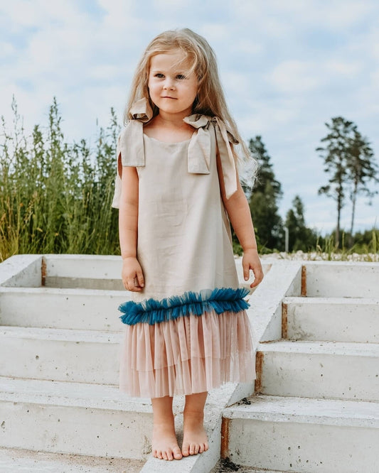 Kokvilnas satīna kleita ar krāsainiem tilla volāniem