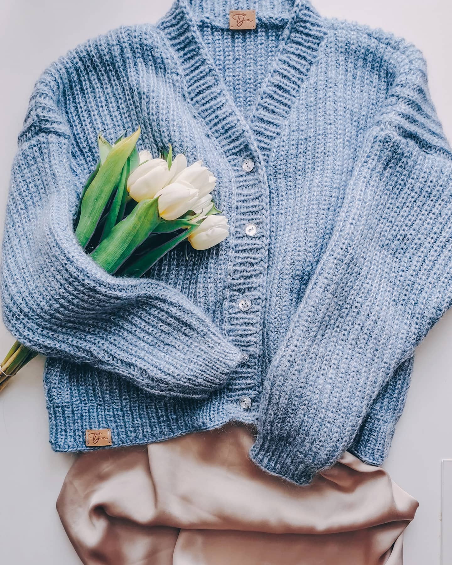 Aprakstā norādīta dzijas metrāža, adatu izmēri un citi materiāli. Vēlamas nelielas zināšanas adīšanā.