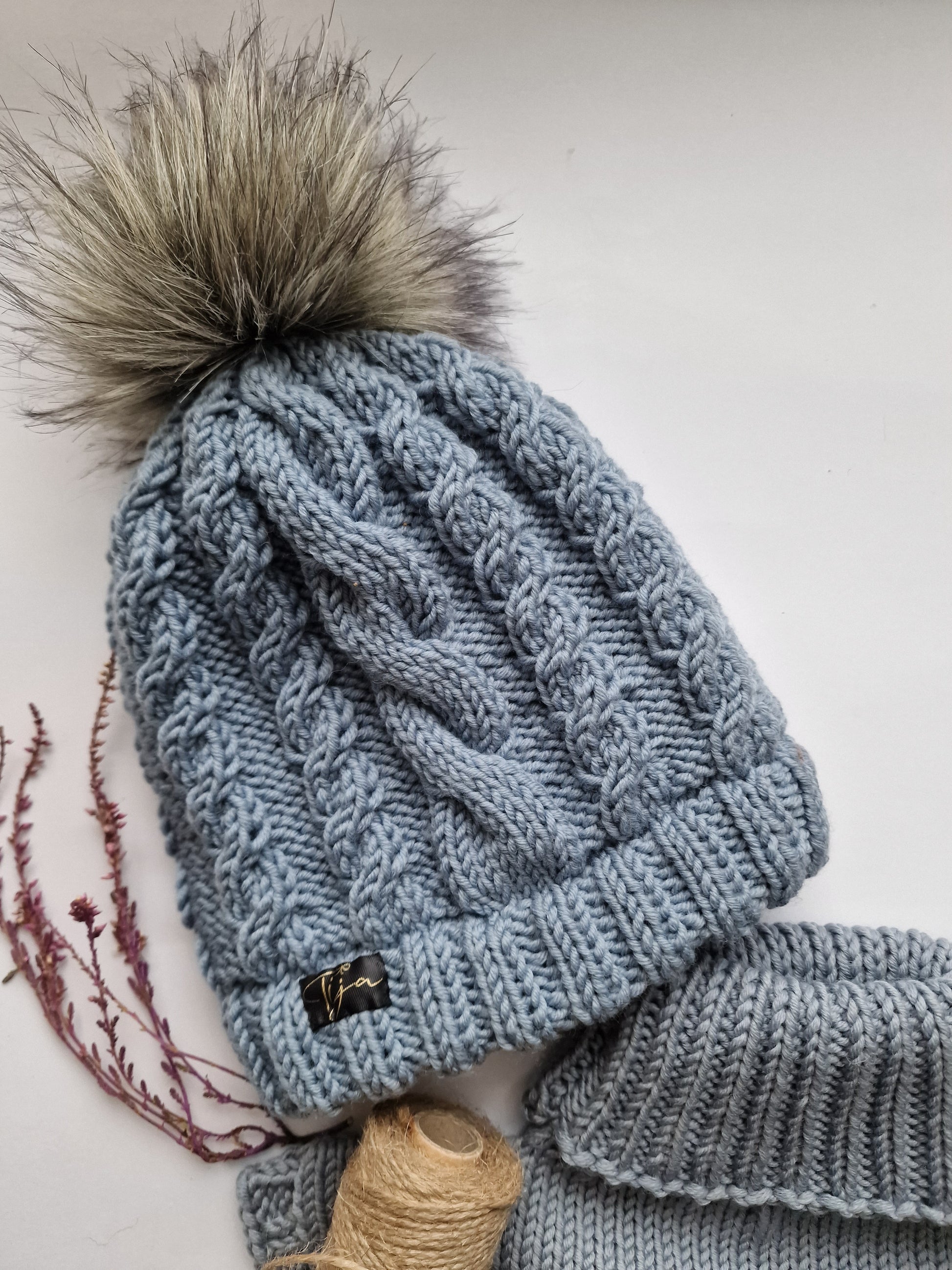 Iespējams izvēlēties ar vai bez bumbuli (mākslīgā kažokāda). Ja vēlaties dzijas bumbuli, pie pasūtijuma veikšanas komentārā norādiet vēlamo krāsu un izmēru.