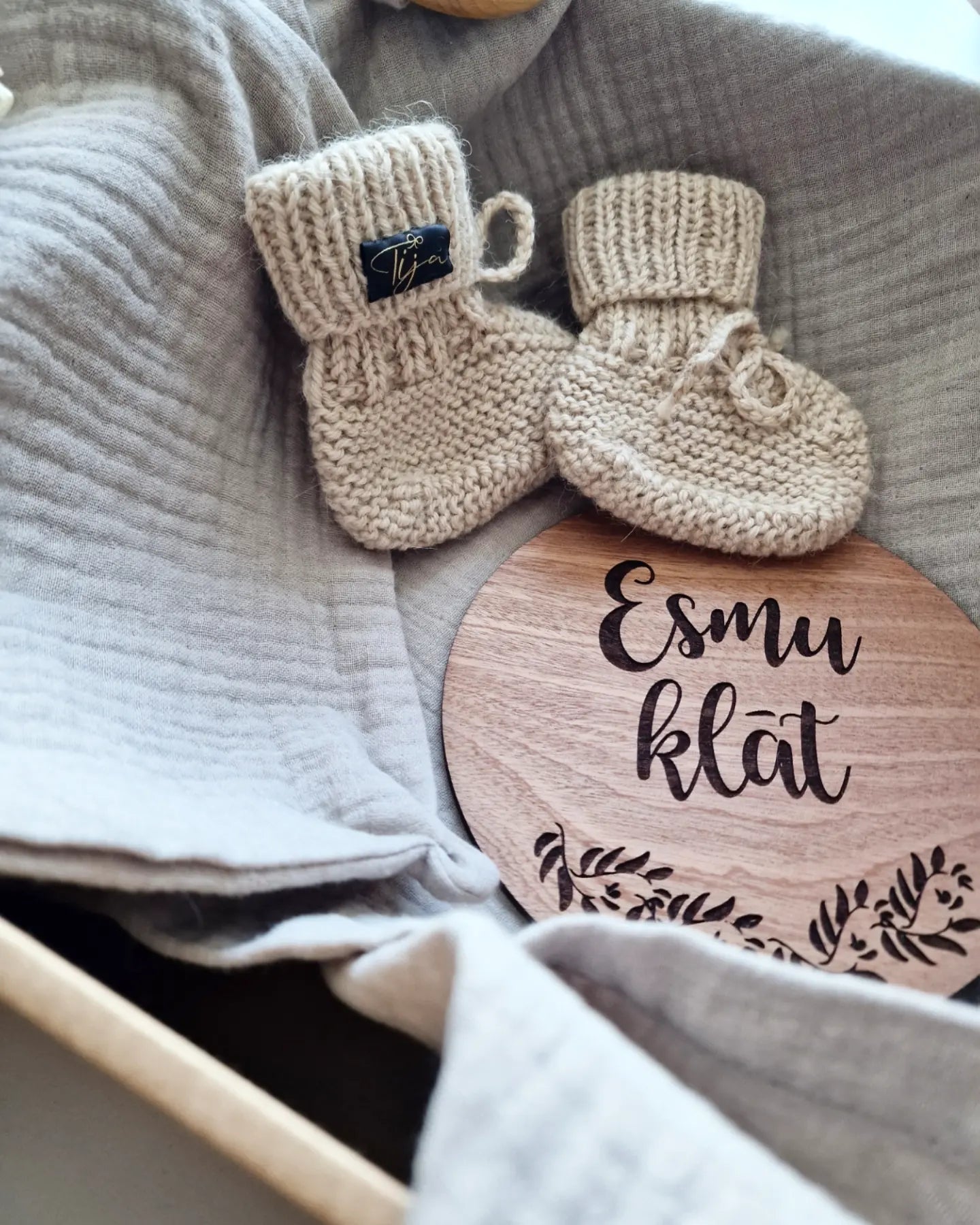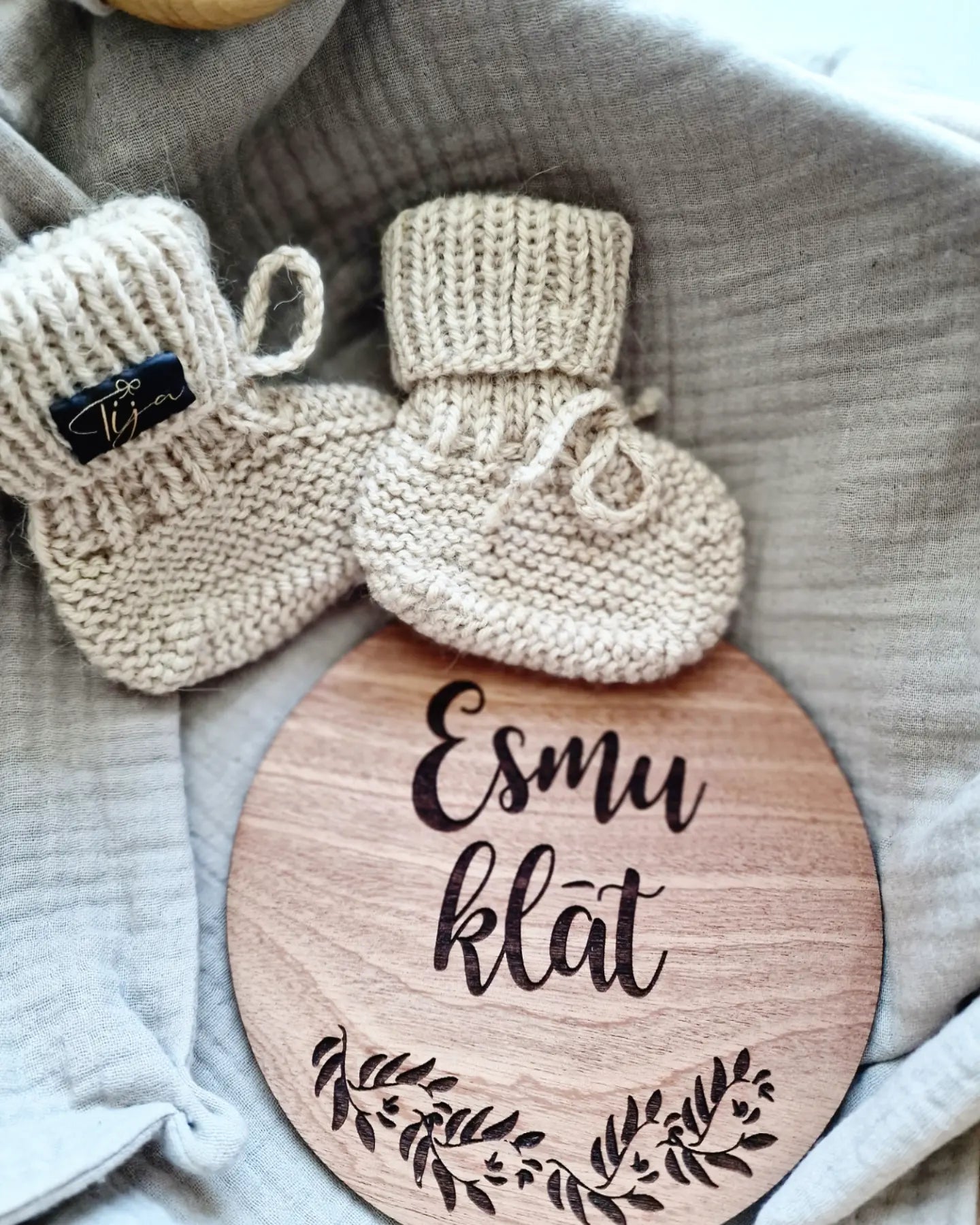 ~ Koka dekors ar uzrakstu " Esmu klāt" pirmajām fotosesijām (diametrs 15cm)