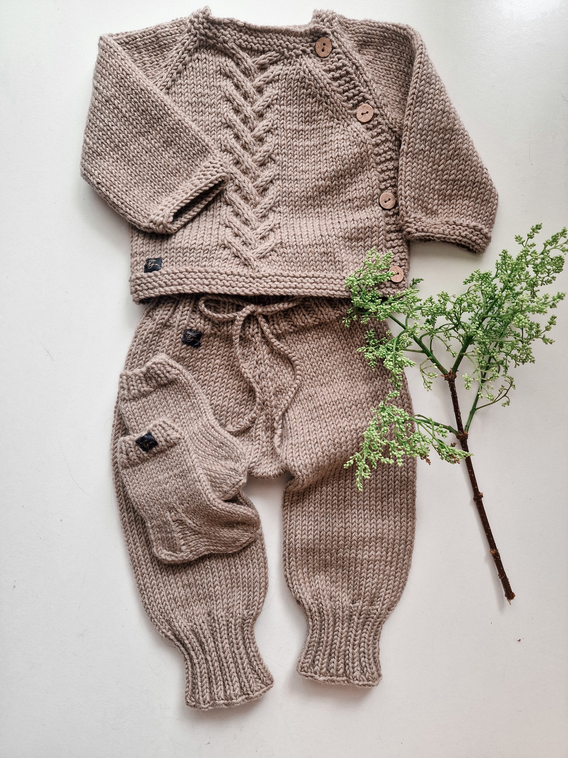 Kopšana: Vilnas adījumi jāmazgā ar rokām (~30°), saudzīgi, bez liekas berzēšanas. Lieko ūdeni vislabāk izsusināt, ietinot dvielī. Žāvēt gludi izklātus.
