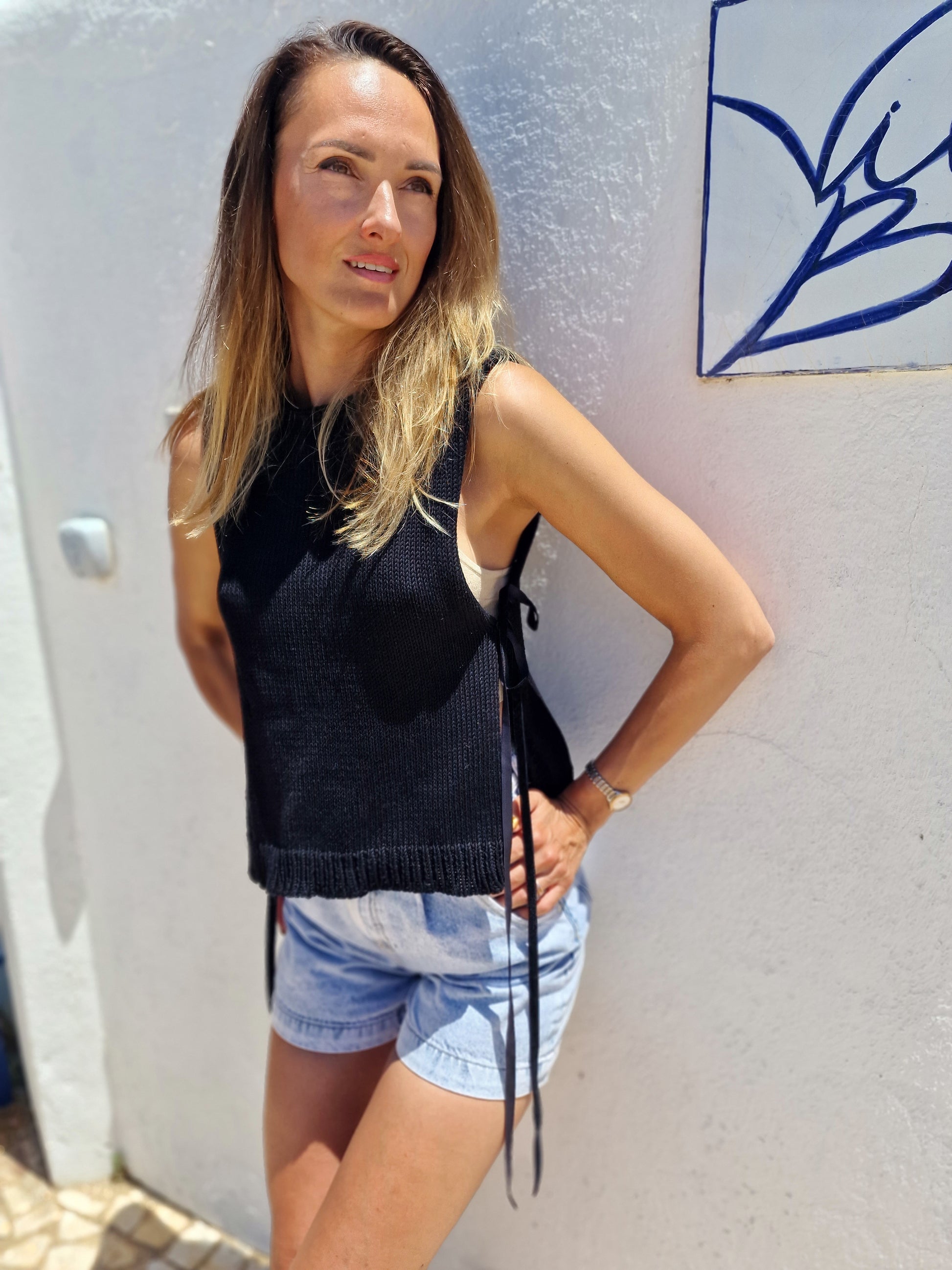 Vasarīgs tops no maigas kokvilnas. Sasienams sānos - vienlaikus gan eleganti, gan jutekliski!