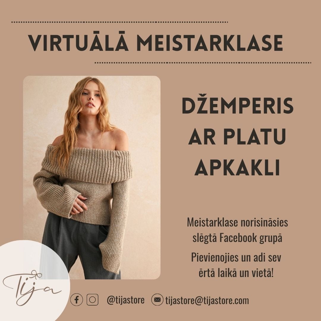 Virtuālā meistarklase “Džemperis ar platu apkakli”