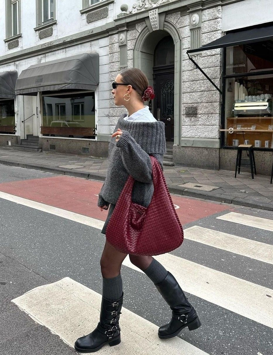 Plata apkakle un atkailināti pleci ir viens no šīs sezonas spēcīgākajiem adījumu trendiem.